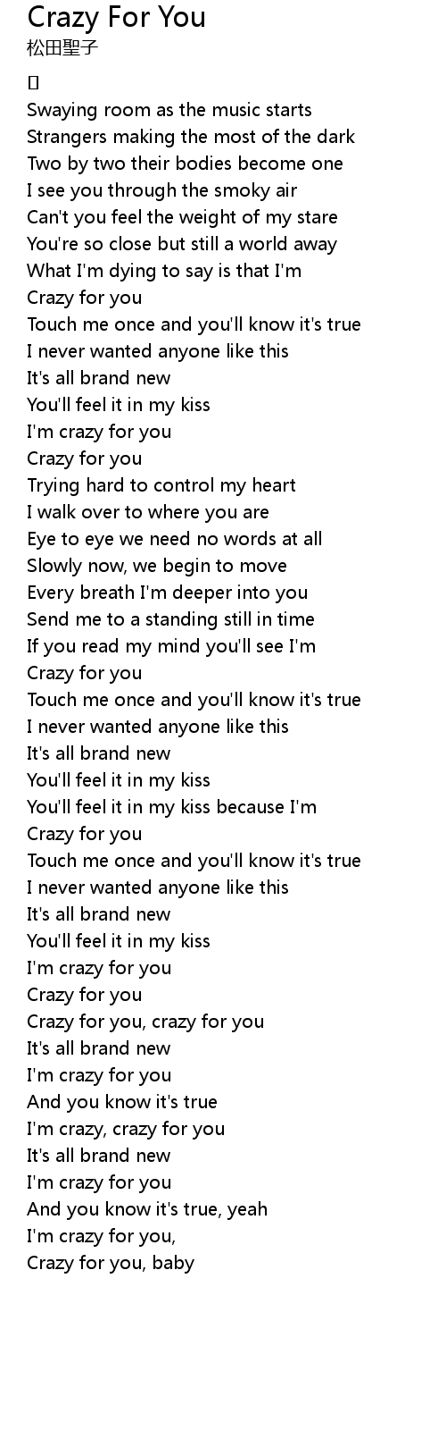 | Crazy for you, crazy for you | |