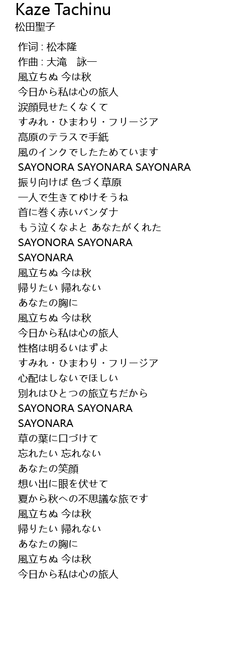 | [00:00.000] | 作词 : 松本隆 |