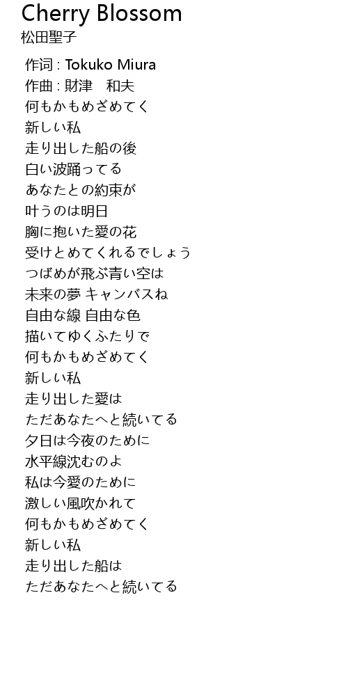 作词 : Tokuko Miura |