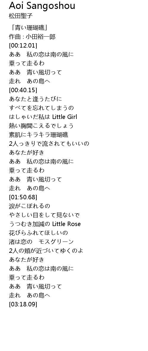 | [00:01.01] | 「青い珊瑚礁」 |