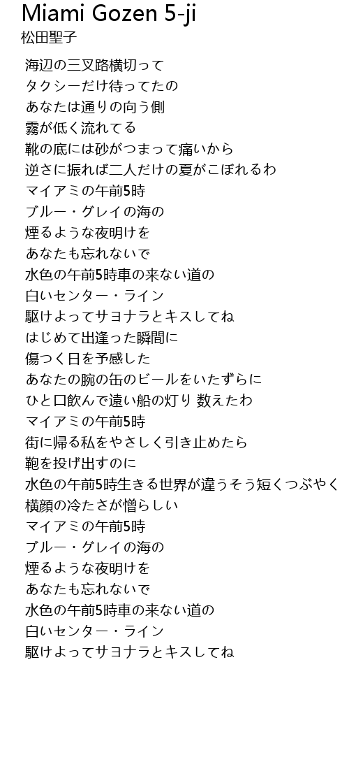 | [04:02.980] | 水色の午前5時車の来ない道の |