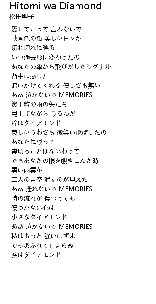 | [03:45.823] | 涙はダイアモンド |