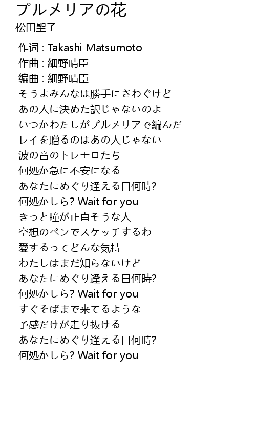 | [00:37.908] | いつかわたしがプルメリアで編んだ |