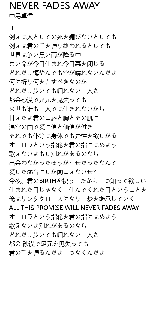 | ALL THIS PROMISE WILL NEVER FADES AWAY | |