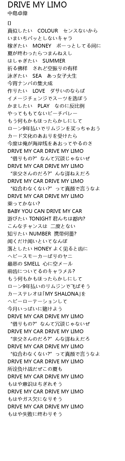 | DRIVE MY CAR DRIVE MY LIMO | |