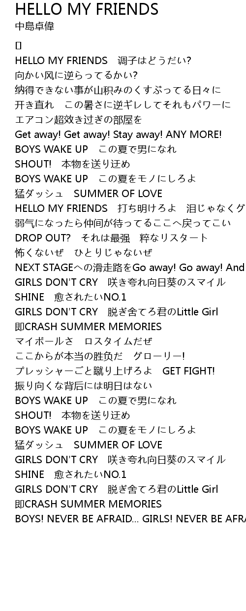 | HELLO MY FRIENDS 打ち明けろよ 泪じゃなくグチこぼせよ | |