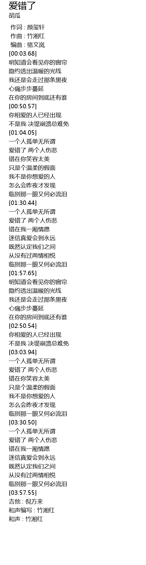 | [03:07.38] | 爱错了 两个人伤悲 |
