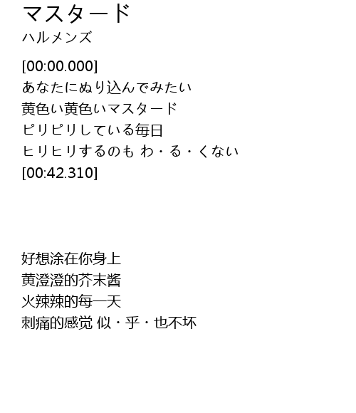 | [00:16.390] | 黄色い黄色いマスタード |