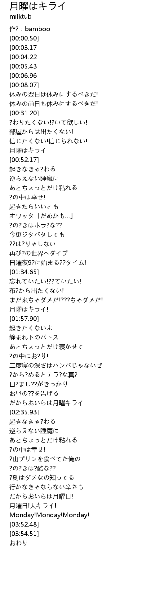 月曜日!大キライ! |