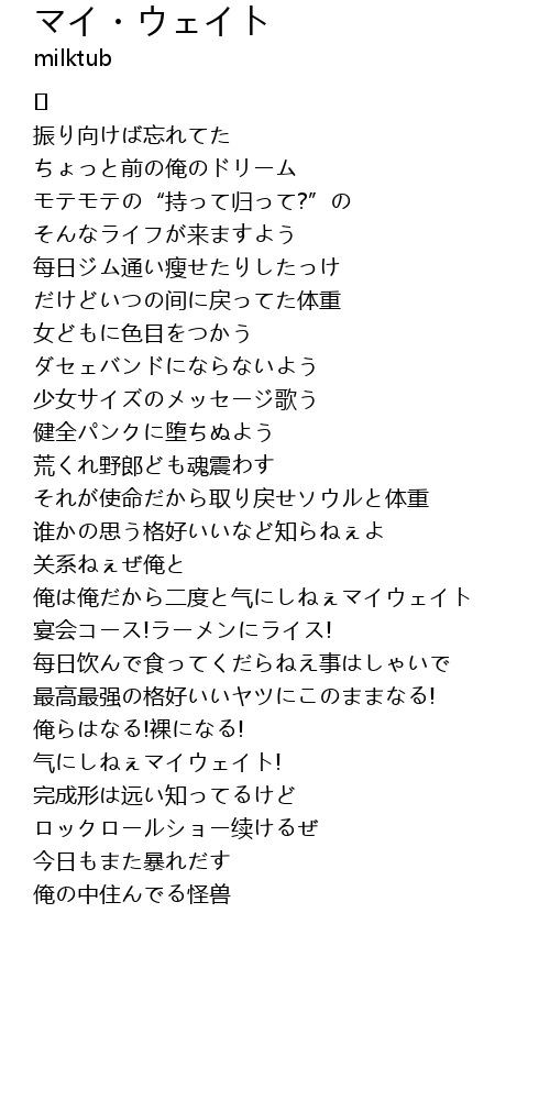| 俺は俺だから二度と气にしねぇマイウェイト | |