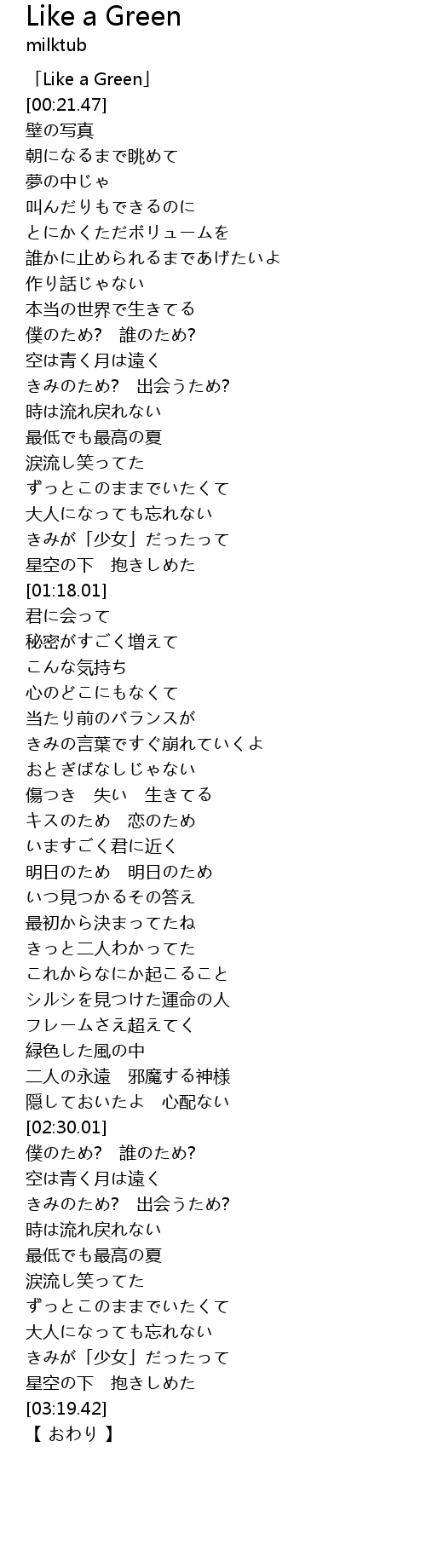 | [00:01.47] | 「Like a Green」 |
