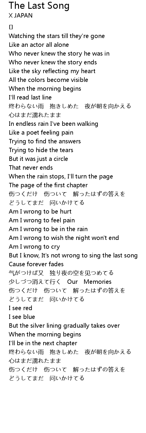 | 终わらない雨 抱きしめた 夜が朝を向かえる | |