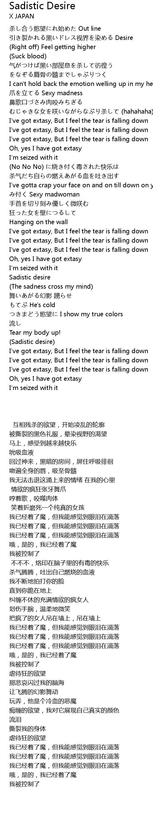 | [02:50.78] | Sadistic desire |