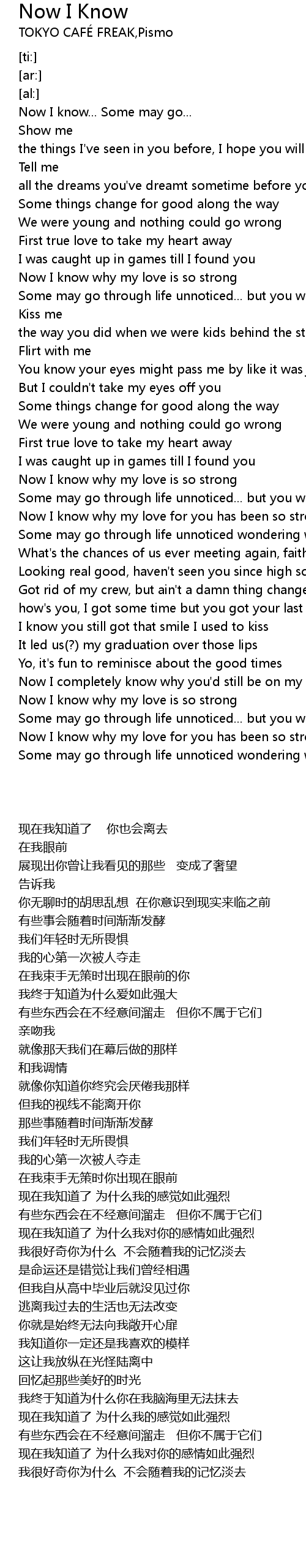 | [03:33.28] | Now I know why my love for you has been so strong |
