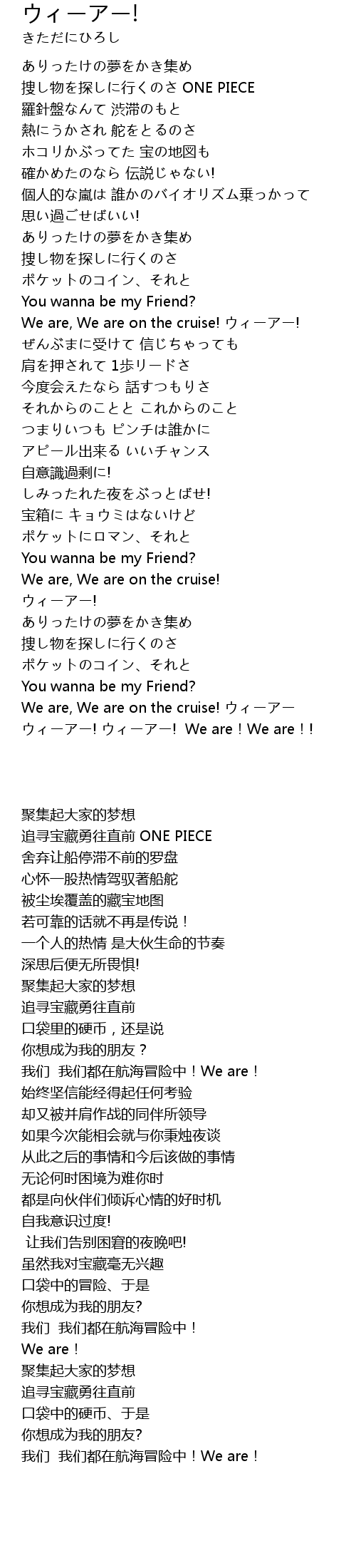 | [00:36.89] | 捜し物を探しに行くのさ ONE PIECE |
