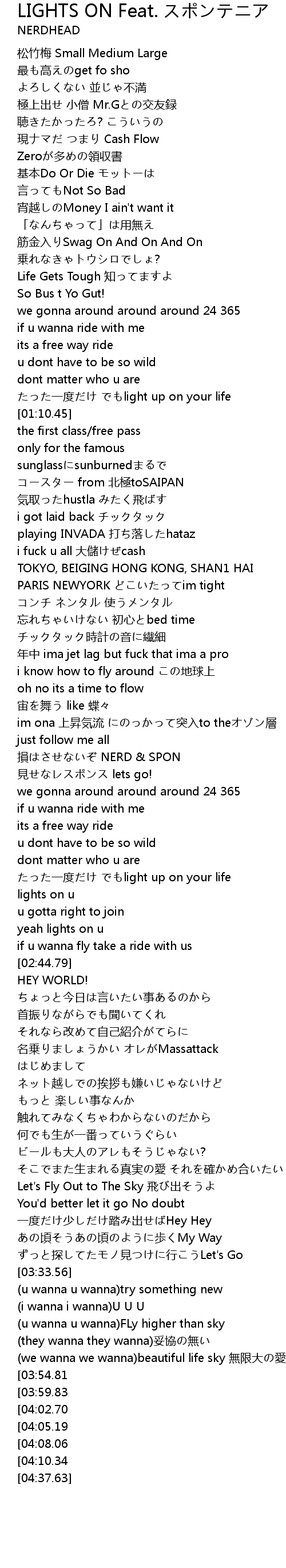 | [02:03.30] | 損はさせないぞ NERD & SPON |
