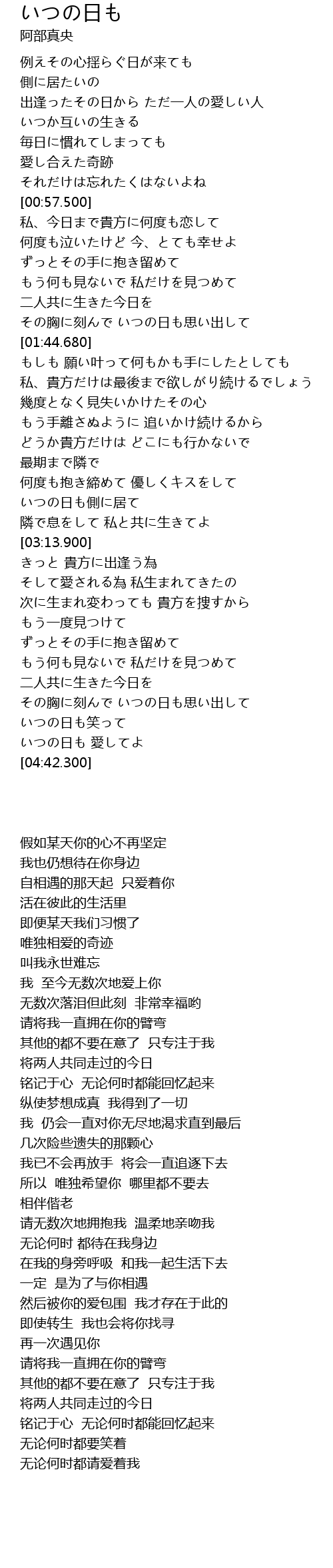 | [00:59.290] | 私、今日まで貴方に何度も恋して |
