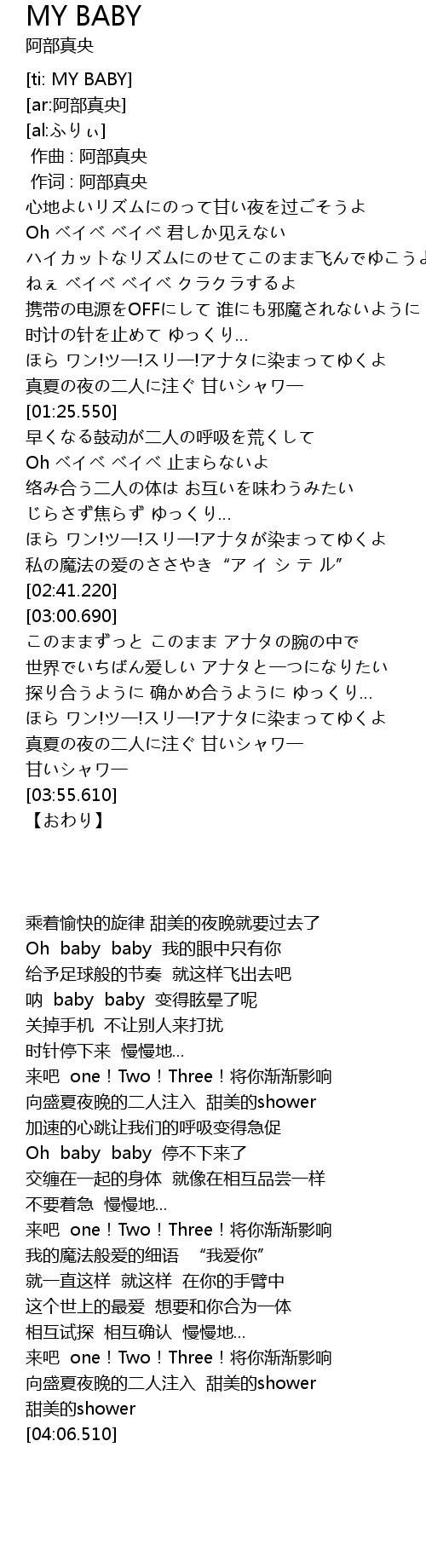 | [00:30.630] | ねぇ ベイベ ベイベ クラクラするよ |