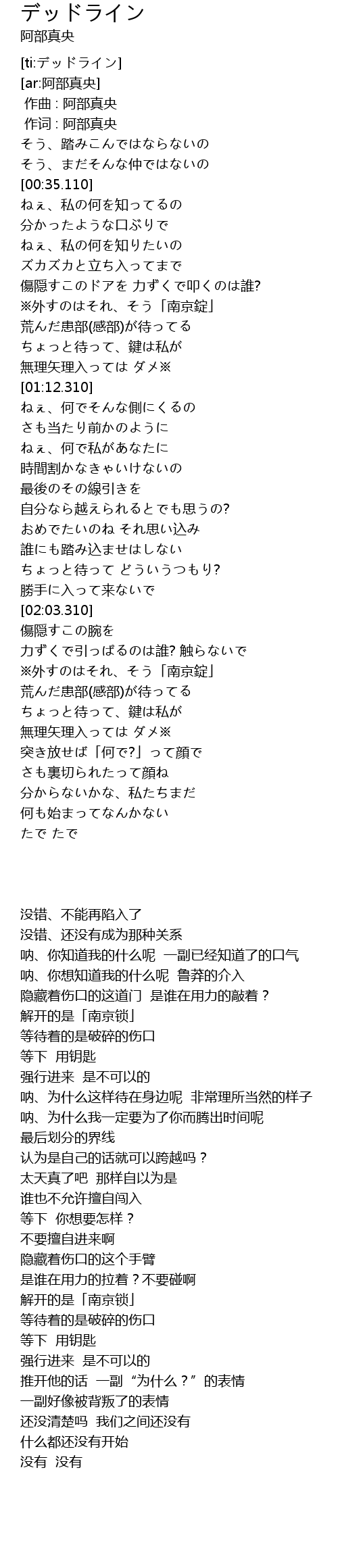 | [00:45.590] | ねぇ、私の何を知りたいの ズカズカと立ち入ってまで |