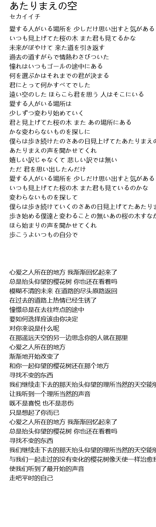 | [03:01.00] | 歩き始める僕達と変わることの無いあの桜の木すなかた気が是手羽 |