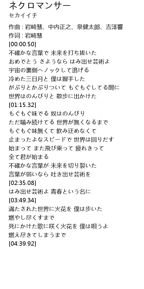 | [00:39.68] | おめでとう さようなら はみ出せ芸術よ |