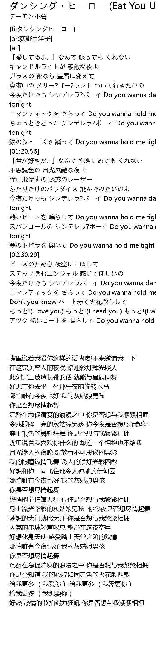 | [01:59.00] | 今夜だけでも シンデレラ?ボーイ Do you wanna dance tonight |