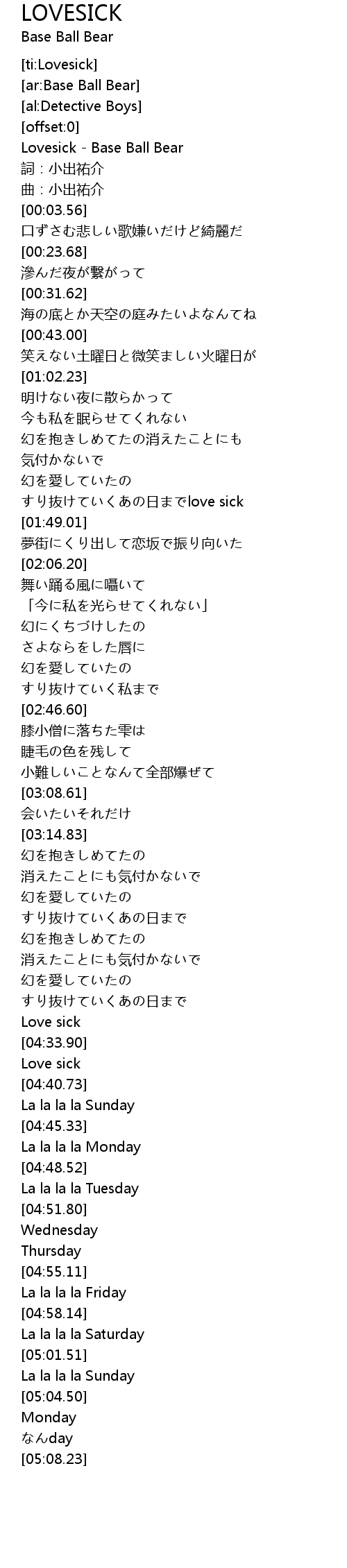 | [00:00.81] | Lovesick - Base Ball Bear |