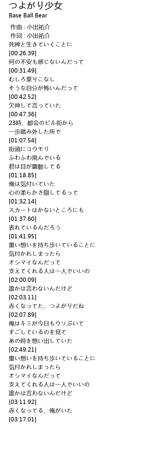 | [02:04.23] | 赤くなってた、つよがりだね |