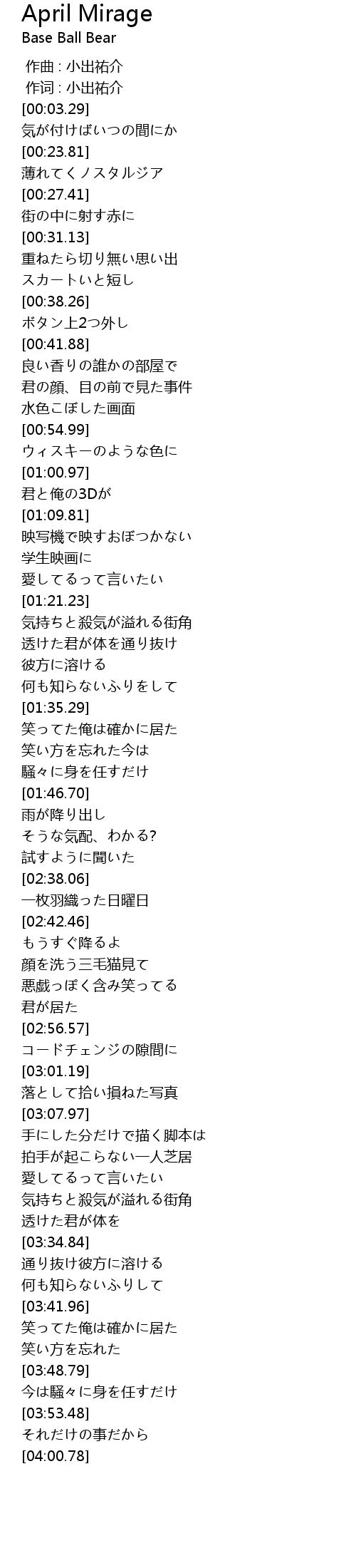 | [03:28.58] | 気持ちと殺気が溢れる街角 |