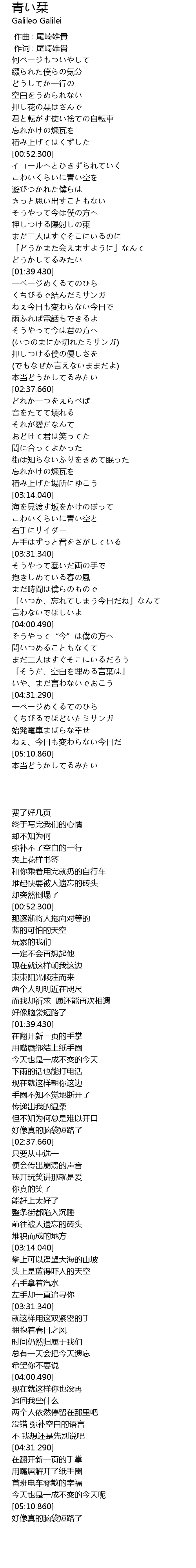 | [02:18.910] | (いつのまにか切れたミサンガ) |
