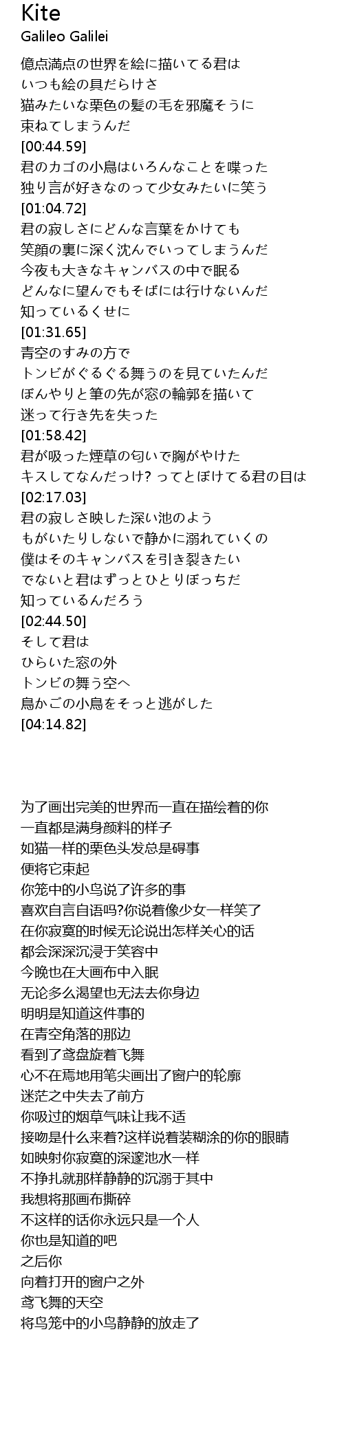 | [00:46.01] | 君のカゴの小鳥はいろんなことを喋った |