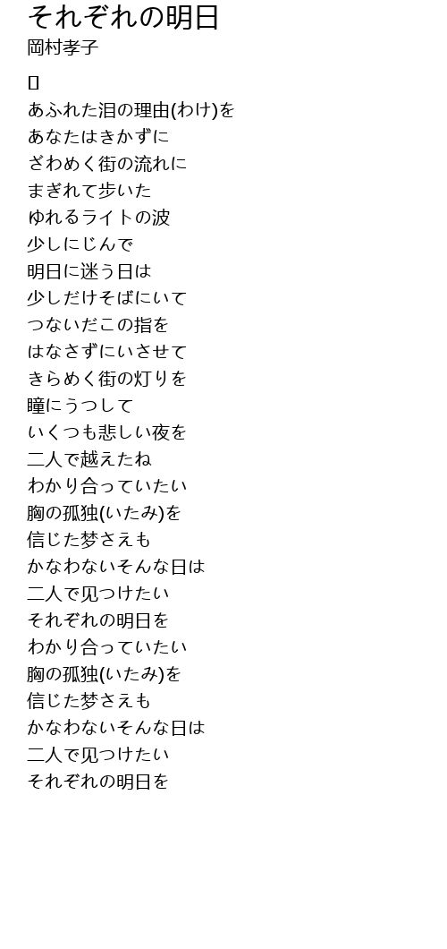 | Song | それぞれの明日 |