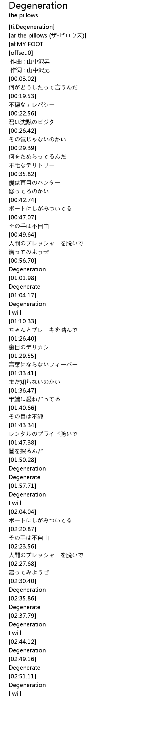 | [02:33.51] | Degeneration |