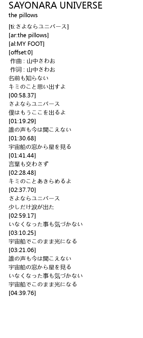 | [01:02.16] | さよならユニバース |