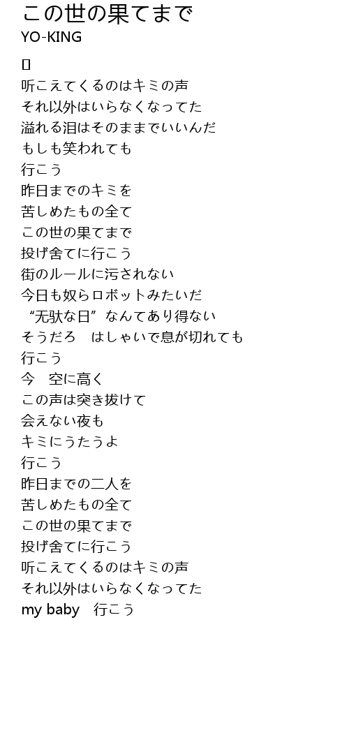 | Song | この世の果てまで |