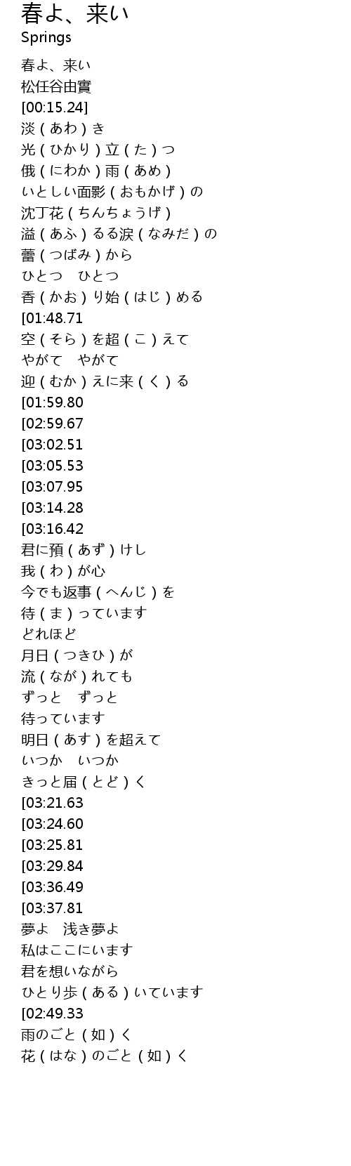 | [00:53.81][01:59.80][02:56.73][03:19.17][03:41.06][04:02.89] | 春よ |