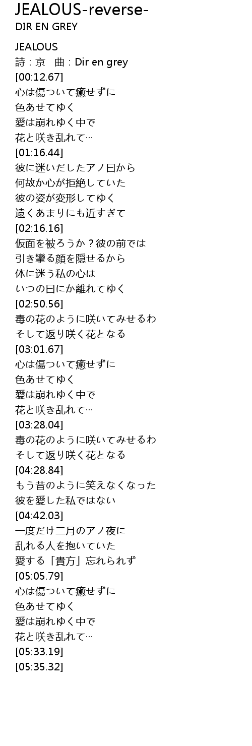 | [00:06.17] | 詩:京 曲:Dir en grey |