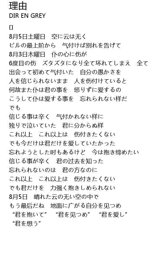 | 何故また仆は君の事を 惩りずに爱するの | |