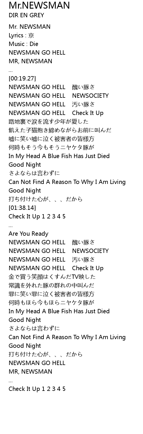 | [02:25.50] | NEWSMAN GO HELL 汚い豚さ |