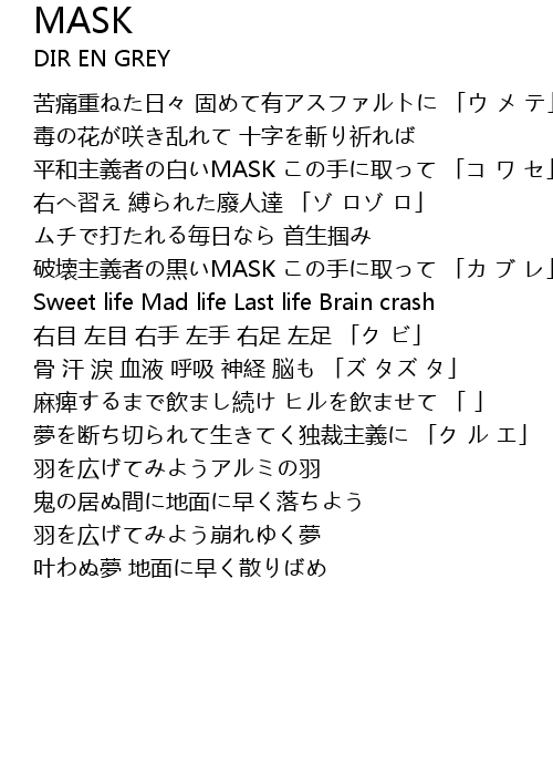 | 平和主義者の白いMASK この手に取って 「コ ワ セ」 | |