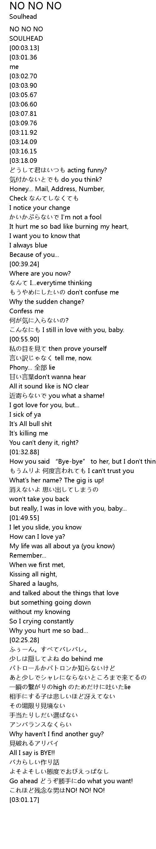 | [02:58.56] | cán niàn nán NO! NO! NO! |
