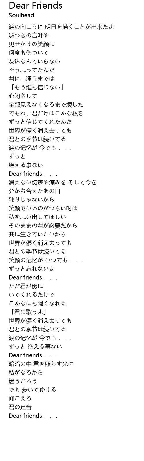 | Song | Dear Friends |