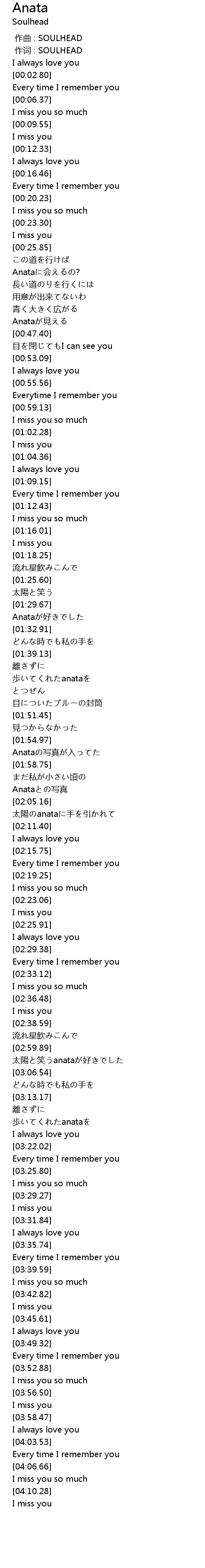 | [03:01.47] | 太陽と笑うanataが好きでした |