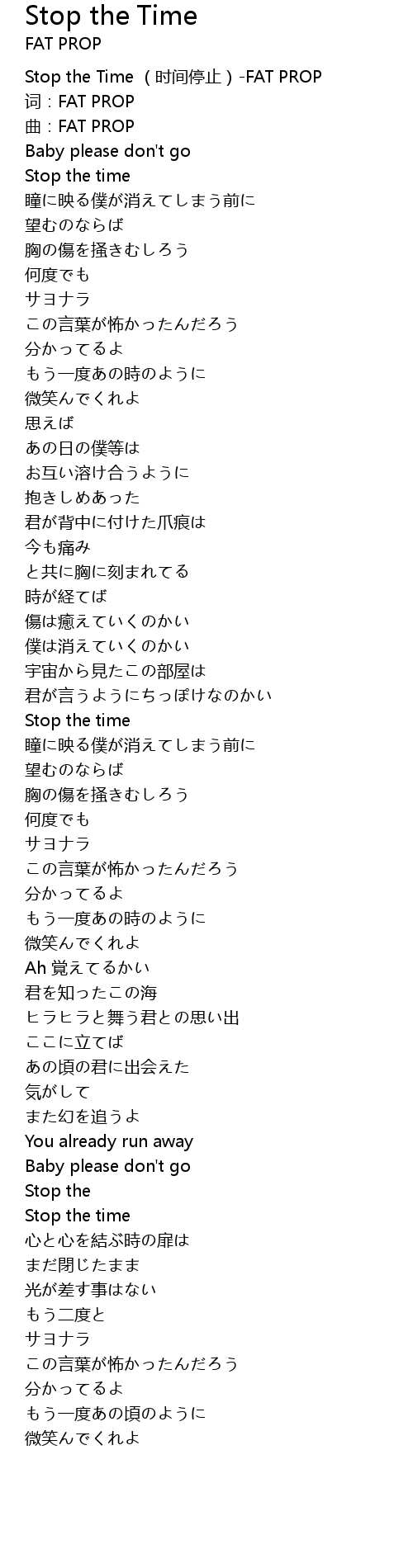 | [00:00.00] | Stop the Time shí jiān tíng zhǐ FAT PROP |