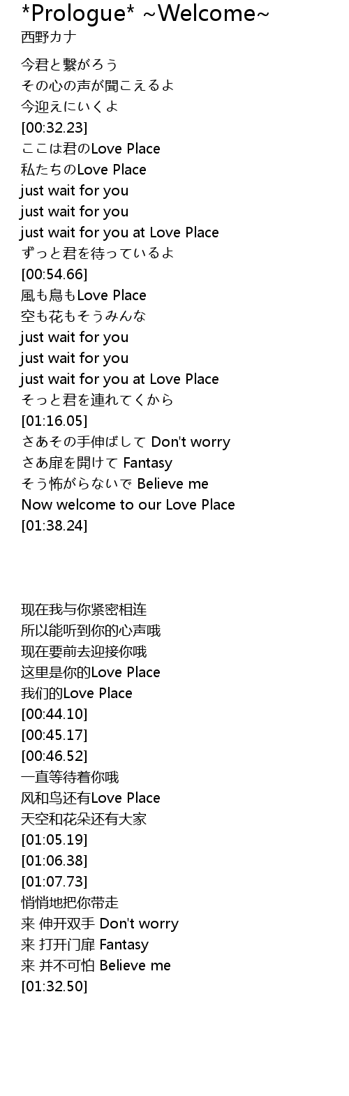 | [01:21.83] | さあ扉を開けて Fantasy |