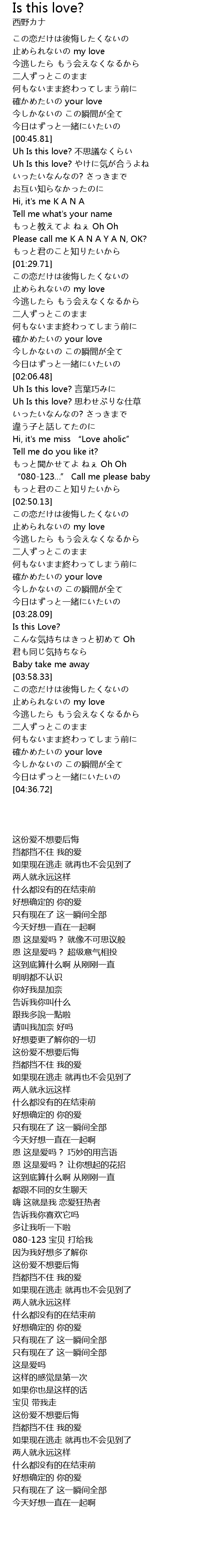 | [02:23.20] | Uh Is this love? 思わせぶりな仕草 |
