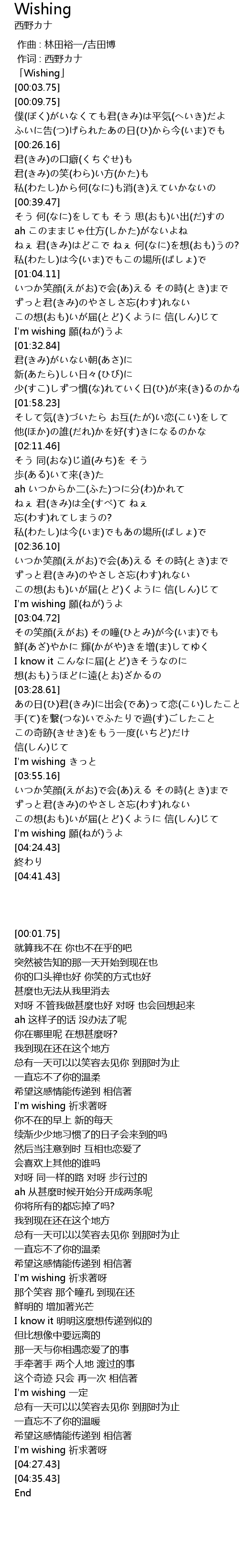 | [00:01.75] | 「Wishing」 |