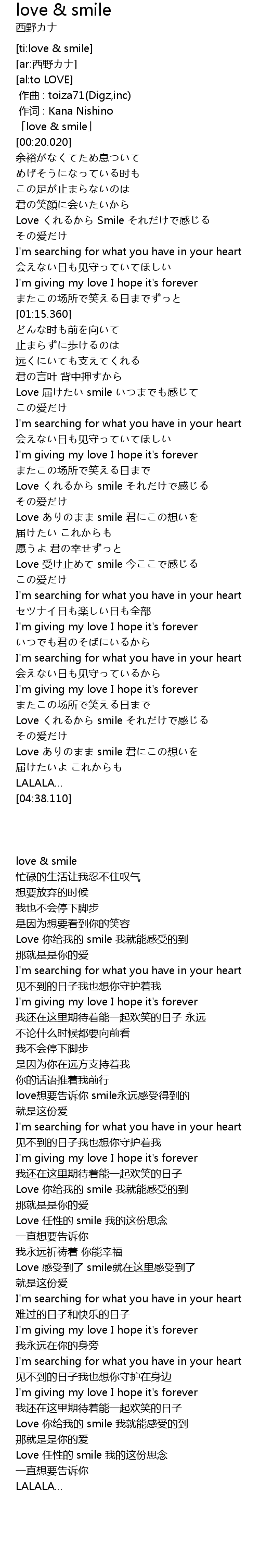 | [03:57.720] | Love ありのまま smile 君にこの想いを |
