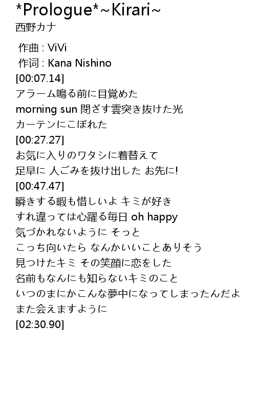 | [01:29.70] | 名前もなんにも知らないキミのこと |