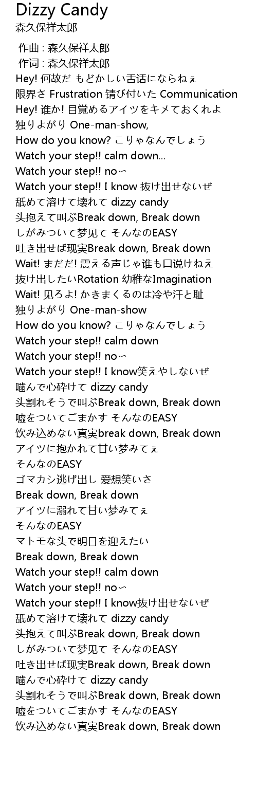 | [01:58.82] | 噛んで心砕けて dizzy candy |